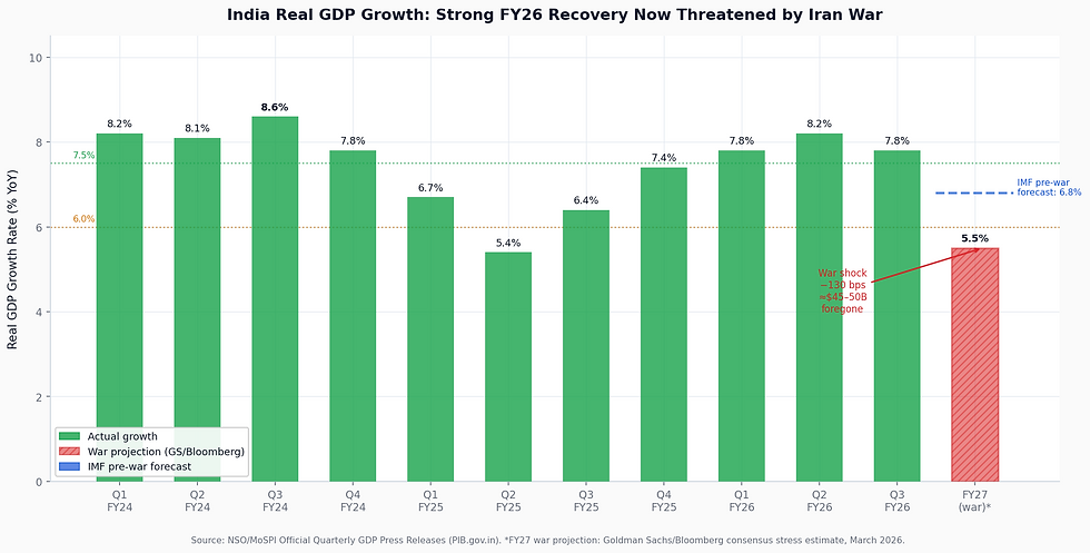 New Risk Created: India swapped an Iran concentration risk (eliminated by US sanctions) for a Russia concentration risk (now 36% of imports). India's refineries are also calibrated for Middle Eastern crude grades, making rapid sourcing switches technically constrained. The current crisis has required paying premiums of $2–8/barrel over Brent for Russian crude — far above the earlier discount era.